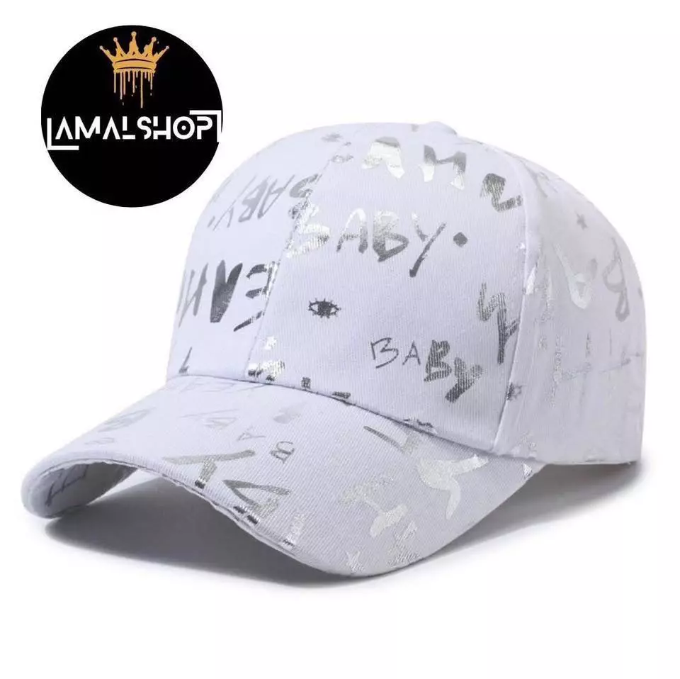 Affiche ton style avec cette casquette blanche tendance, parfaite pour un look streetwear moderne.Conçue en coton léger et respirant, elle est décorée d’imprimés argentés “BABY” qui ajoutent une touche unique et brillante.Son design unisexe et sa tai...