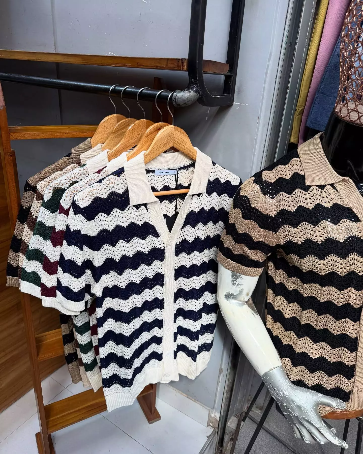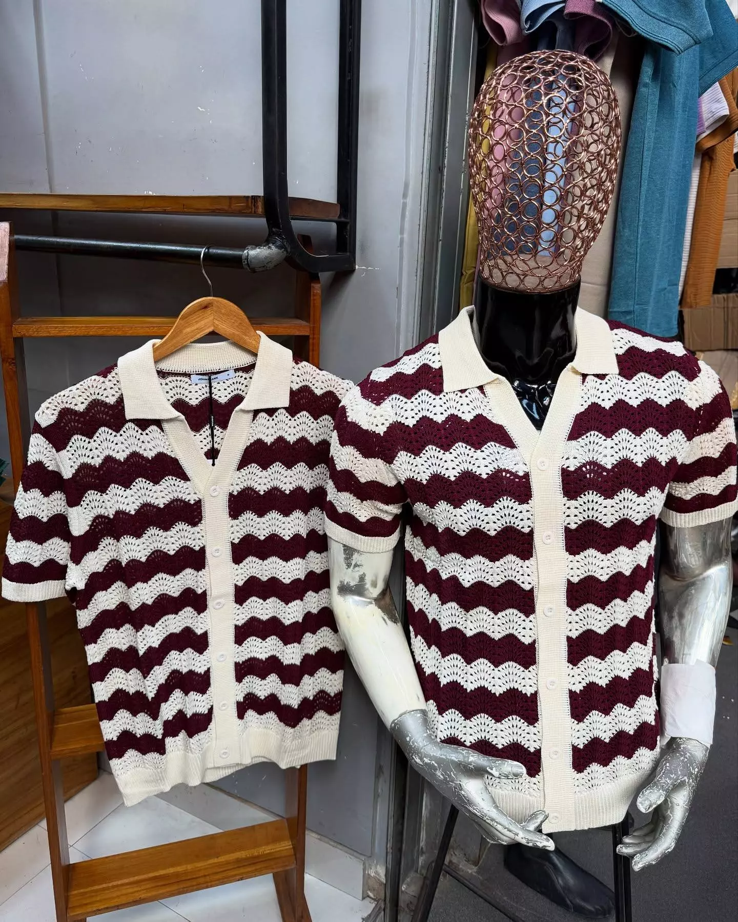 Gilet tricoté rétro à rayures bordeaux et écru