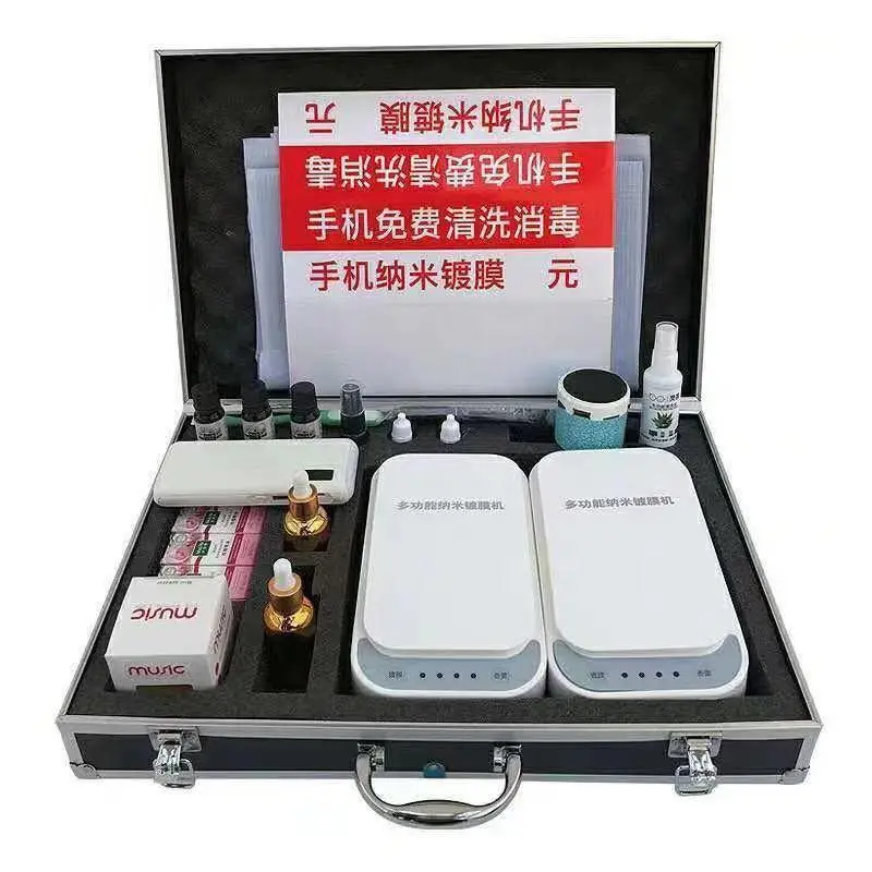 Ce pack inclut tout le matériel nécessaire : machines de revêtement, liquides nano, huiles essentielles, solutions de nettoyage, accessoires professionnels et supports publicitaires. Il est conçu pour une utilisation simple, efficace et rentable.