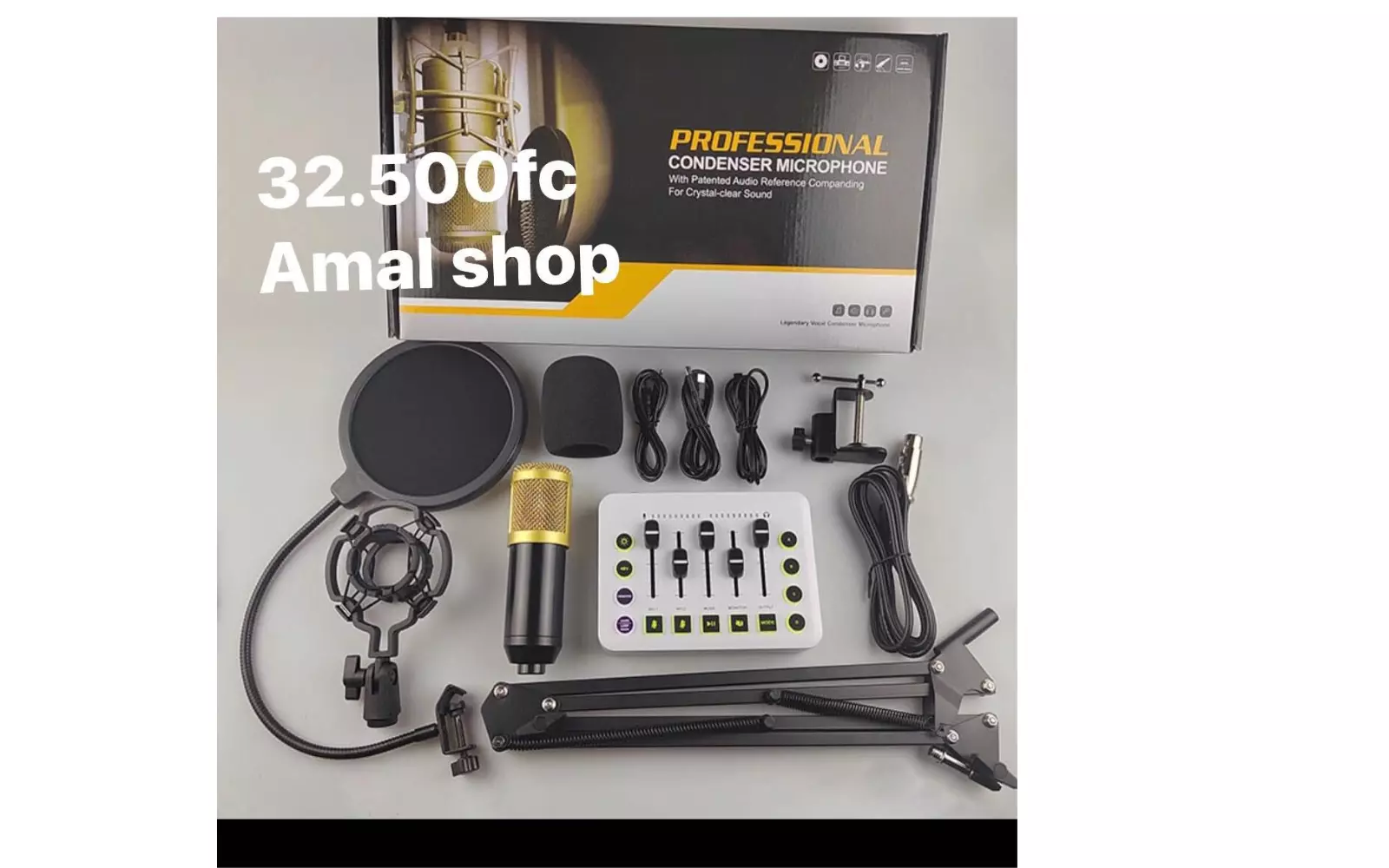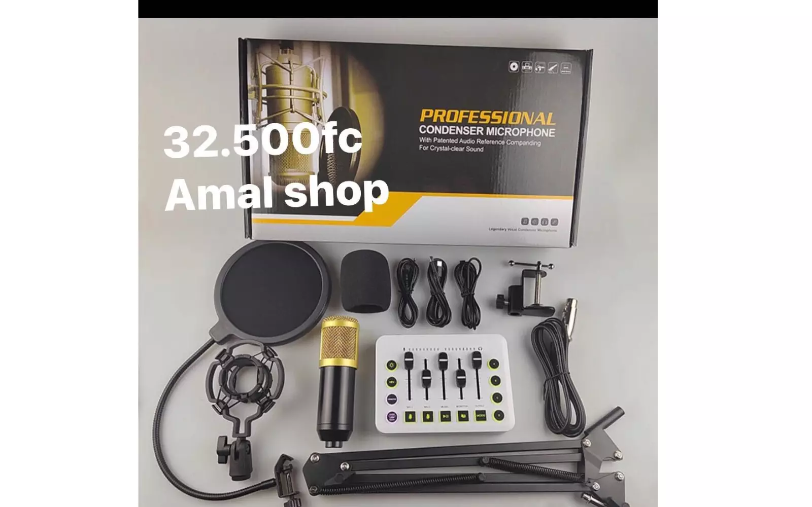 Améliorez la qualité de vos enregistrements, podcasts, lives et vidéos avec ce kit microphone professionnel à condensateur complet.Idéal pour studios maison, streaming, chant, gaming ou enregistrement de podcasts. Livraison Chine vers Comores Le pack...