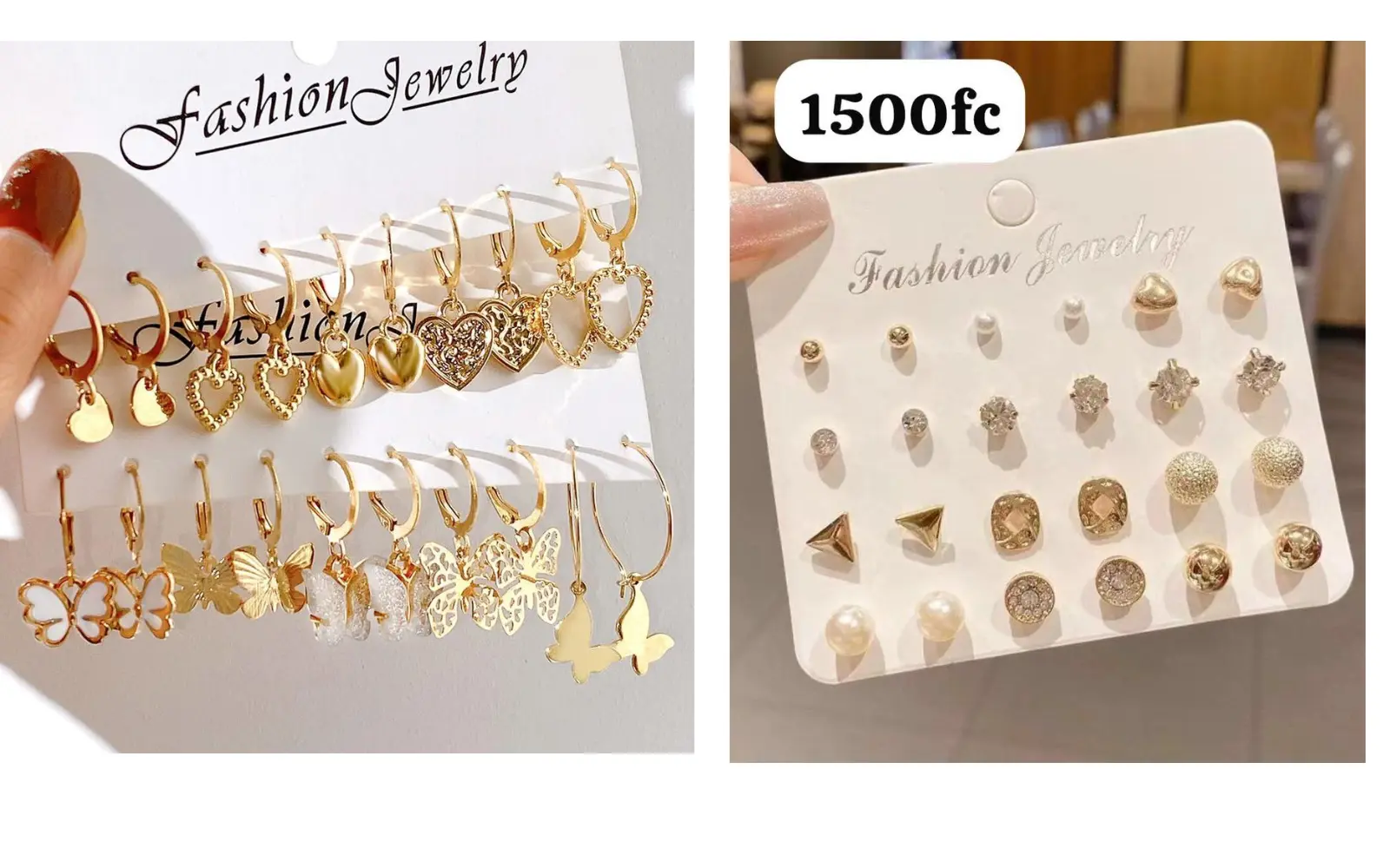 Ce set complet comprend plusieurs modèles délicats : cœurs dorés, papillons élégants, créoles fines et puces scintillantes, idéals pour toutes les occasions — du quotidien aux soirées les plus élégantes.