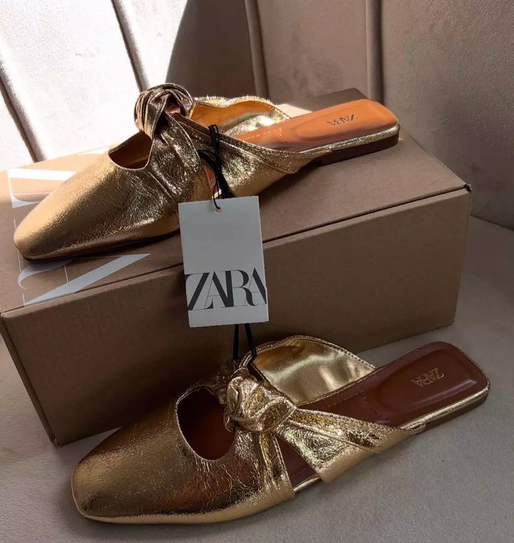 Ajoutez une touche de glamour à vos tenues avec ces magnifiques mules dorées ZARA.